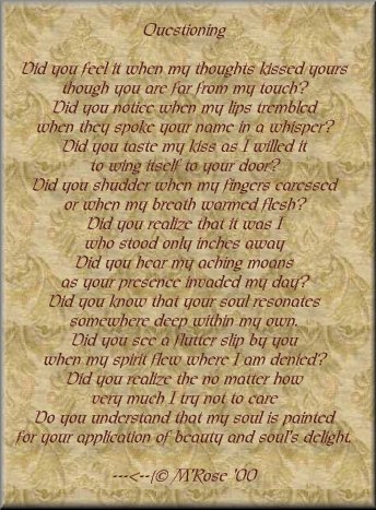 | Chantaclair's Parlor Designs © 1999;2000;2001 Marsha Rose   Select from below to visit my other web pages: CONDITIONS OF USE: Copyrighted Images and/or Poetry on this site may NOT be removed from these pages, changed, sold, referenced in your web pages (as in linking to the source) or used in any way for any purpose without express written concent. They are the property of the copyright owner listed upon this page. I'm a nice lady, ask me! This site updated